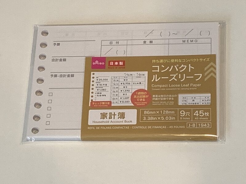 ダイソーで「コンパクトルーズリーフ(家計簿)」を購入しました。