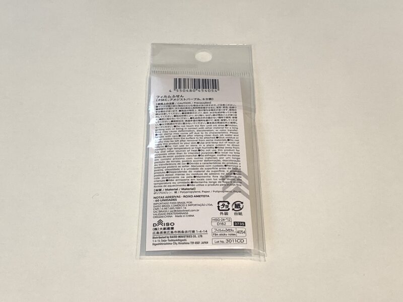 フィルムふせんは普通のふせんより高級なイメージがありますが、このふせんは110円で購入できます。