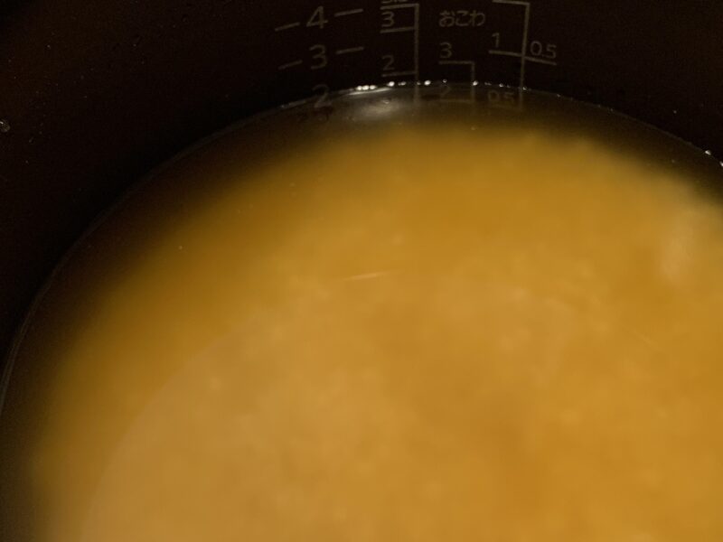 今度は混ぜません。軽く平らにして、炊飯します。