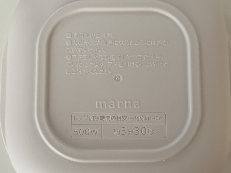 この容器で、特にわたしが嬉しいなと感じたのは、容器の裏面にレンジの加熱時間とグラム数が印字されていたことです。