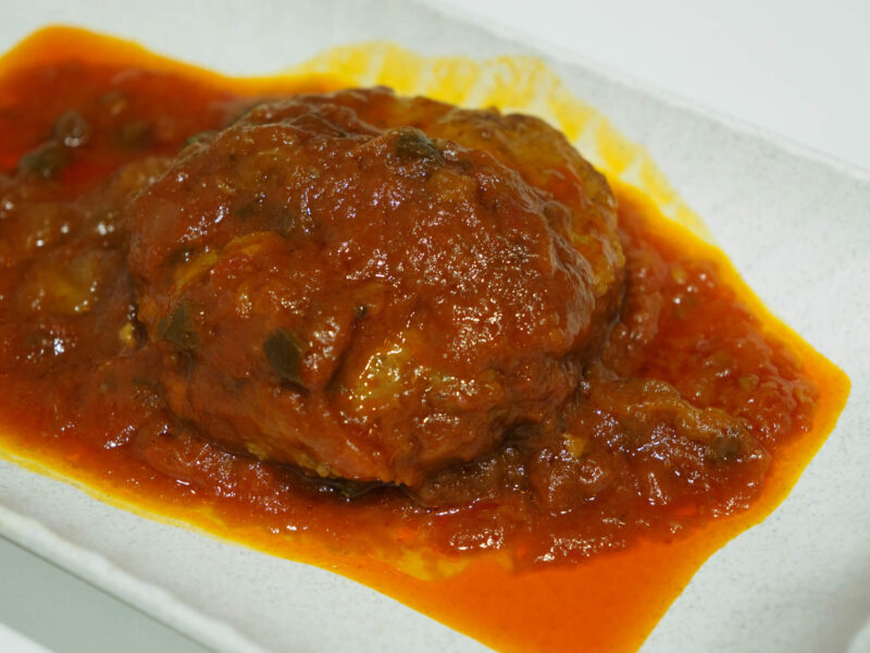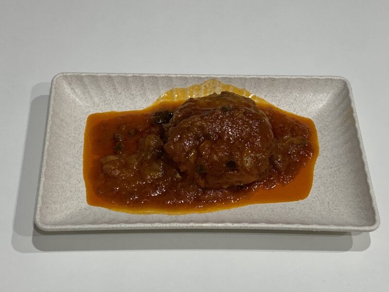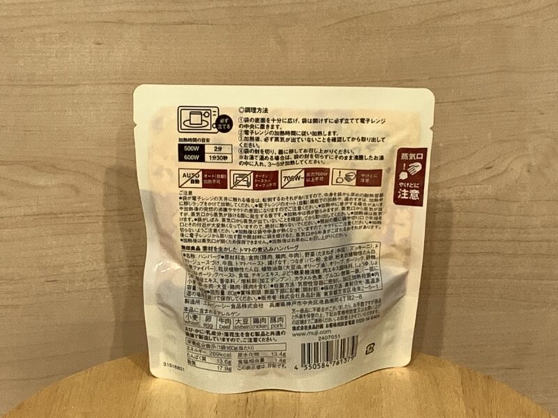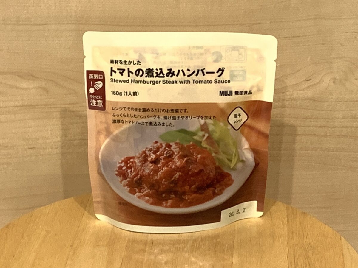 無印良品の「素材を生かしたトマトの煮込みハンバーグ」は、電子レンジで温めてお皿に盛り付けるだけで、簡単に美味しい1品を用意できる便利な商品でした。
