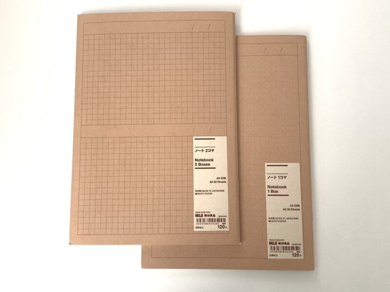 今回購入したのは、「ノート 2コマ」と「ノート 1コマ」のA5サイズです。