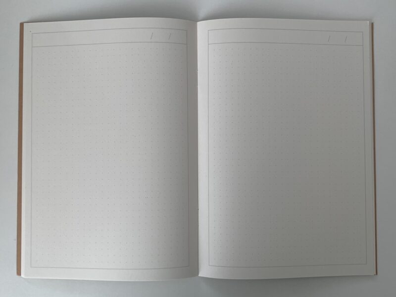右上に日付を書く欄があり、ドット方眼のノートです。