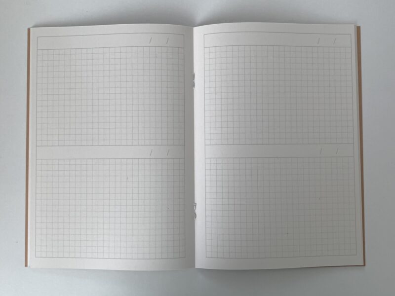 上下に2コマになっています。日付を書く欄がコマの右上に用意されています。方眼です。