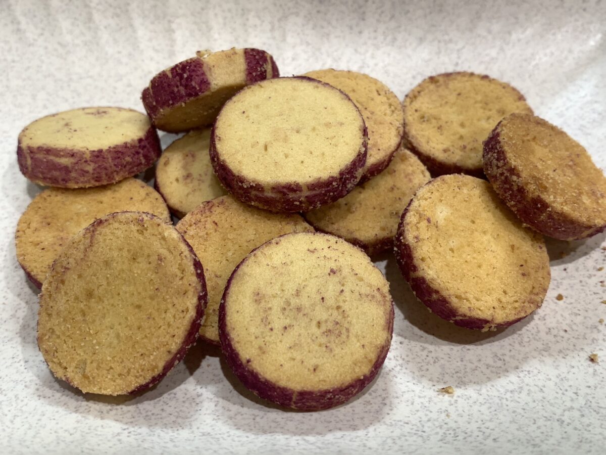 輪切りにしたさつまいものような見た目のクッキーです。