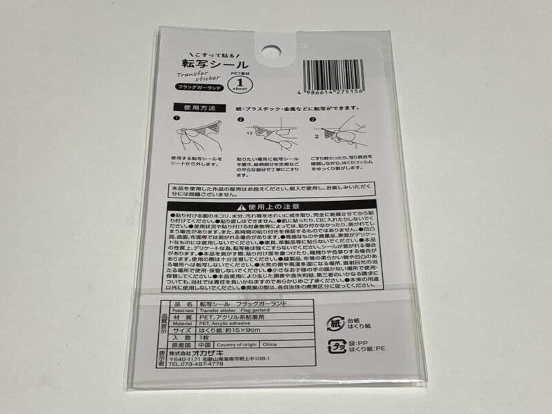 今回買った転写シールは、1枚1枚が独立しているタイプなので使いやすいなと思いました。
