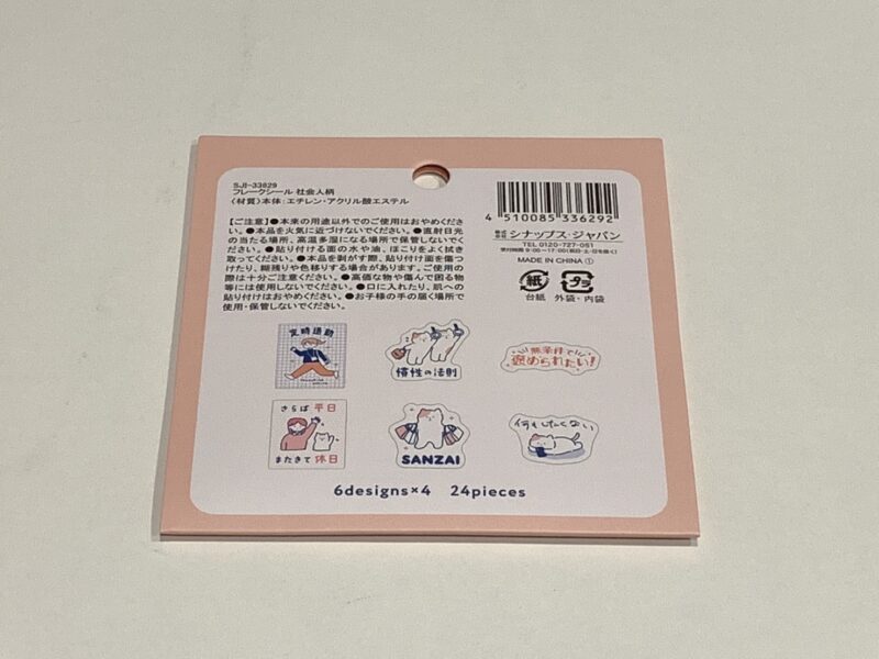 シナップス・ジャパンの商品です。シナップス・ジャパンは、100円ショップ向けにかわいい商品をたくさん作っています。このシールも、買わずにはいられないかわいさでした。