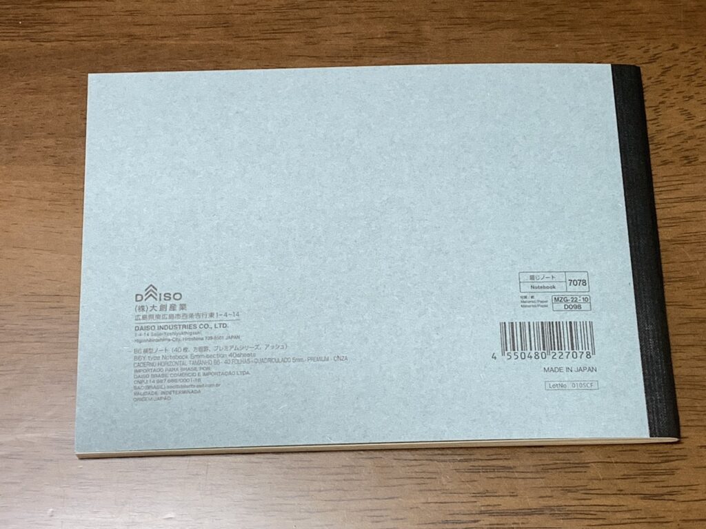わたしが買ったのは、横長のセミB6サイズで5ミリ方眼のもの。本文用紙の枚数は40枚あります。