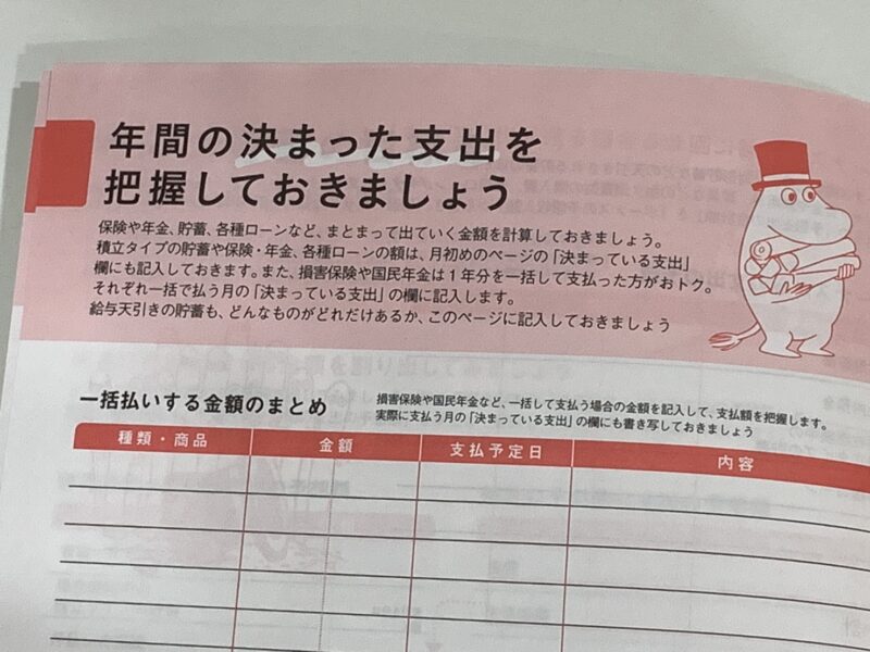 ムーミンの家計簿が付いてきた