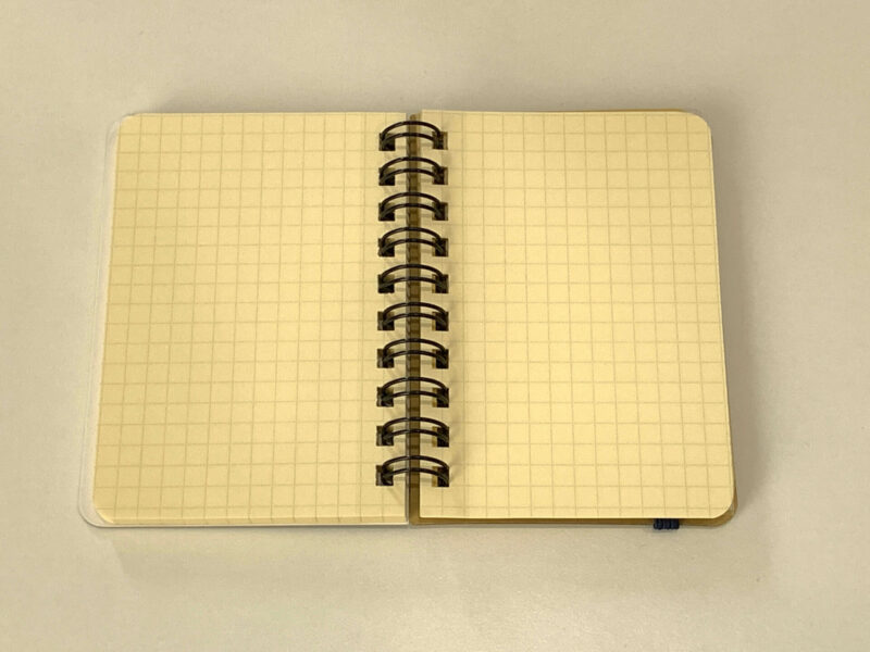 表紙と裏表紙が厚めでしっかりしていて、ゴムバンドも付いているので、かばんにポイっと放り込めるところがお気に入りです。