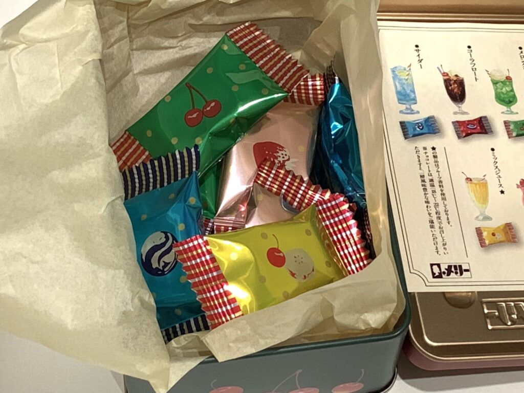 外側の缶がかわいいだけでは終わらないのがメリーチョコレートです。