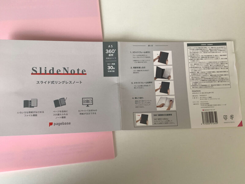 こちらが、今回購入した「Slide Note(スライドノート) スライド式リングレスノート」です。
