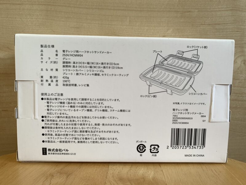 こちらが今回購入した3COINSの「電子レンジ用ハーフホットサンドメーカー」です。