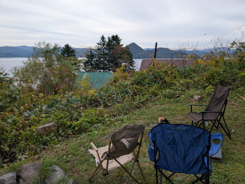 木の下サイトは洞爺湖を正面に見ることができるので開放感があってとてもいい!プライベート感も確保できてかなりゆっくりと楽しむことができます。