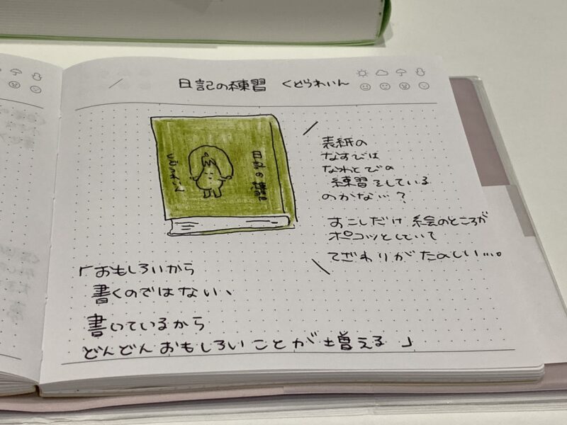 そこに書かれていたのは、くどうさんの日記の考え方でした。くどうさんは10代の頃から日記を書いているそうですが、毎日欠かさず書こうと思ったことは一度もなくて、「むらがある日記」ほど、いい日記だと思うと書かれていました。