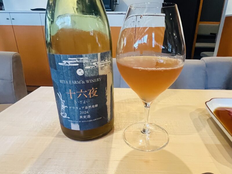 扱うワインはすべて自然派のナチュールワイン。オレンジワインをチョイス。控えめな甘さと程よい渋み、すっきりとした口当たりで飲み心地満点。とても美味しい。