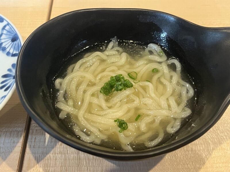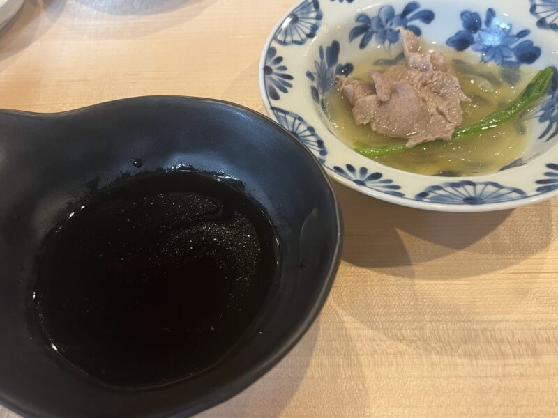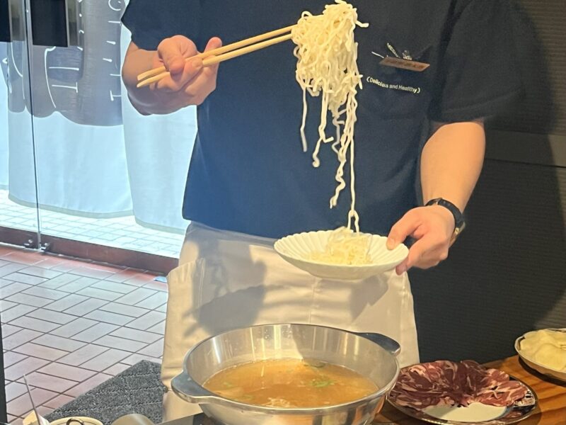 シメは米粉ラーメン。テーブルで塩分濃度を計り、一番美味しいタイミングでいただけます。