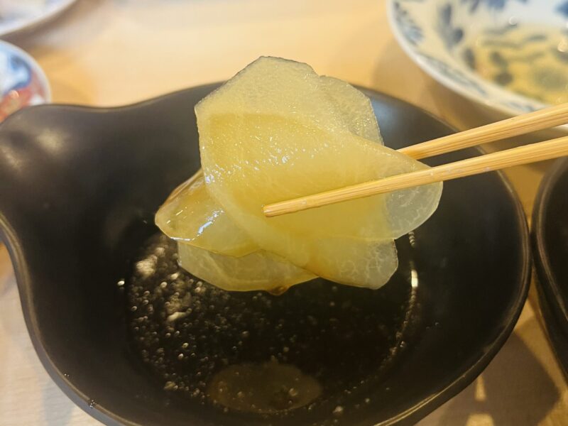 薄くスライスされたじゃがいも(メークイン)は、鰹出汁をたっぷりと浴び、やさしい食感となって鍋から出てきます。