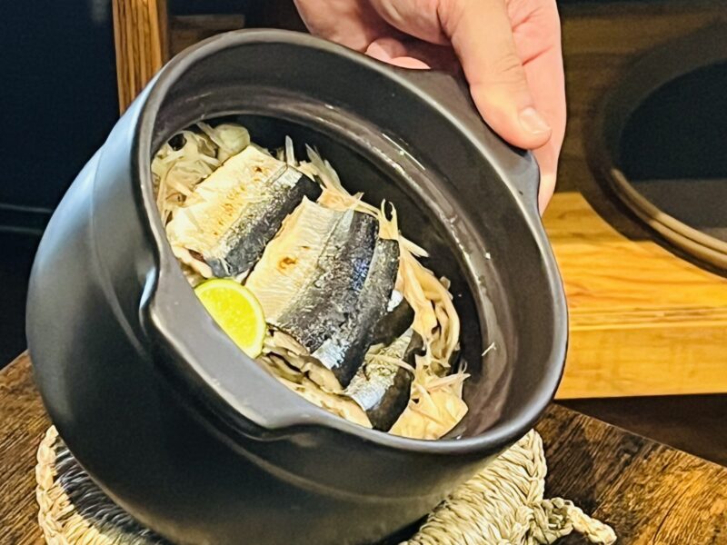 旬の根室産秋刀魚を香ばしく焼いて低糖質のササニシキと一緒に炊き込んだ土鍋ご飯。