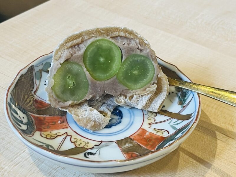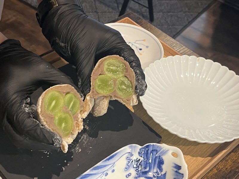 なめらかな求肥と甘すぎないあんこがシャインマスカットの美味しさを引き立てる絶品フルーツ大福。