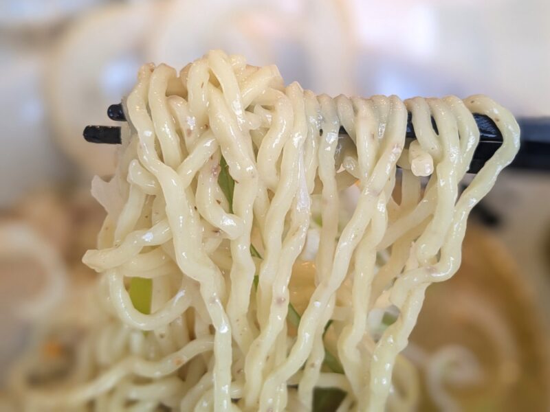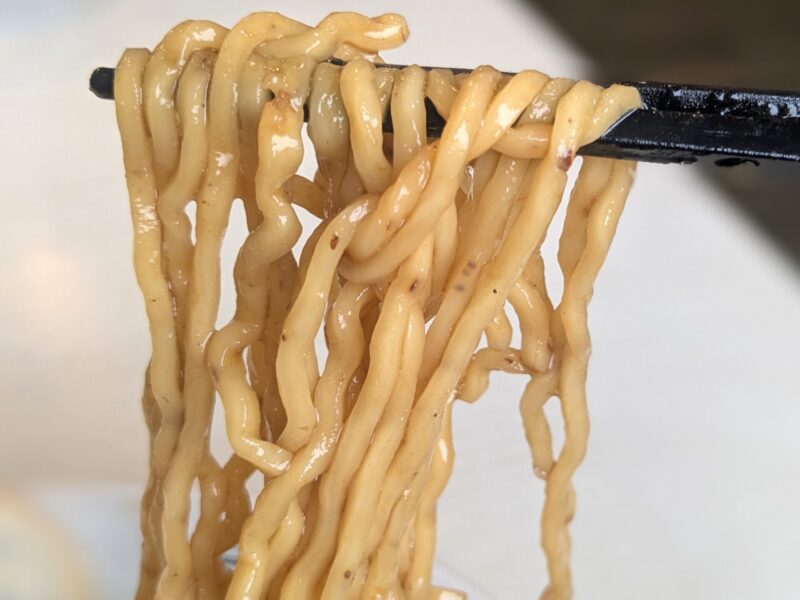 こちらの麺は不思議なんですよ。麺って伸びて来ると食感が悪くなりがちですが(自家製麺は特に)、この麺は全くそんなことにならない不思議。むしろ時間がたって麺にスープが染みこんで余計に美味しさが倍増してくる不思議。