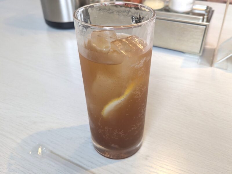 お会計後にレジ横のお水を持ってボックス席に着席です。(セルフ)