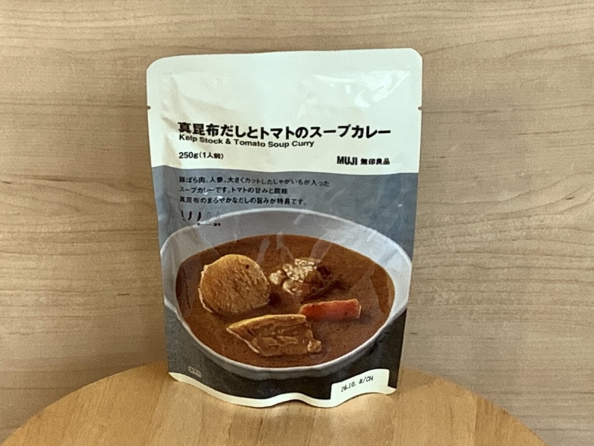 今回は、無印良品のレトルト商品から「真昆布だしとトマトのスープカレー」を買ってみました。