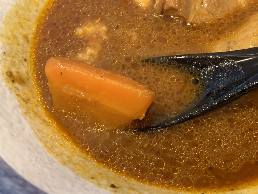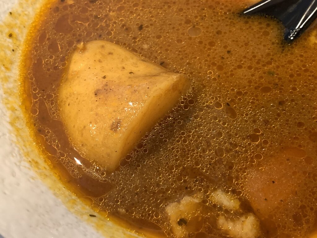 具材はどれも美味しい。お肉がほろほろ、おいもがほくほく、にんじんは柔らかくて、どれも満足。