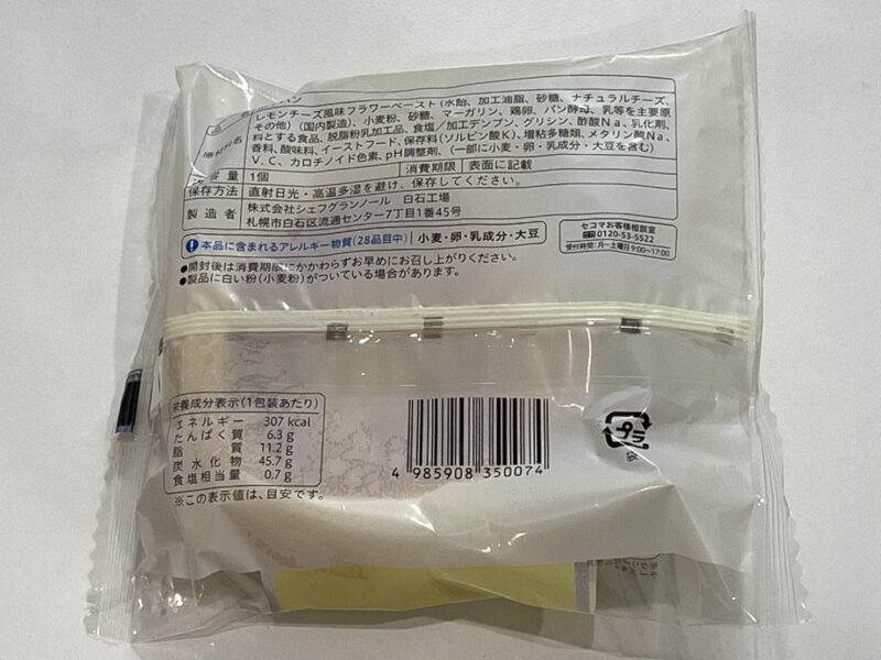 原材料を見ると、レモンチーズ風味と書いてあります。