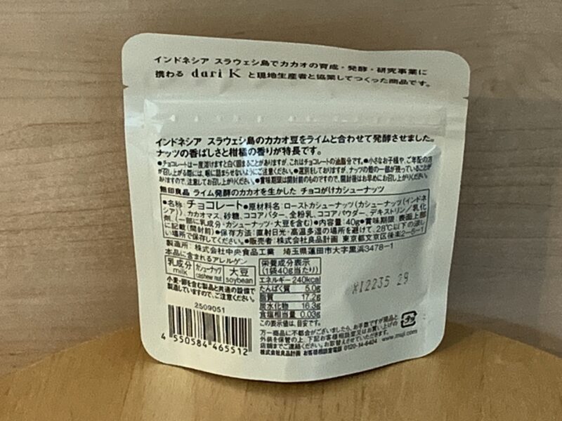 今回購入したのは、「ライム発酵のカカオを生かしたチョコがけカシューナッツ」です。
