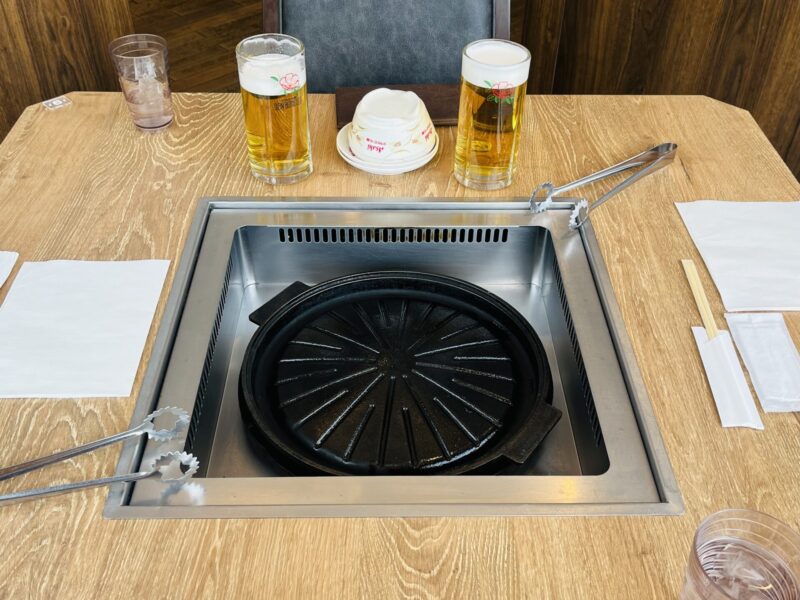 うまいビールにジンギスカンは鉄板ですね。平日お昼の背徳感がまた心地よい。