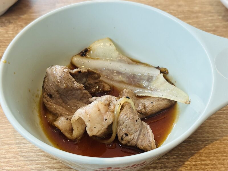 お肉にうっすら白く火が通ってきたら炒めて出来上がり。