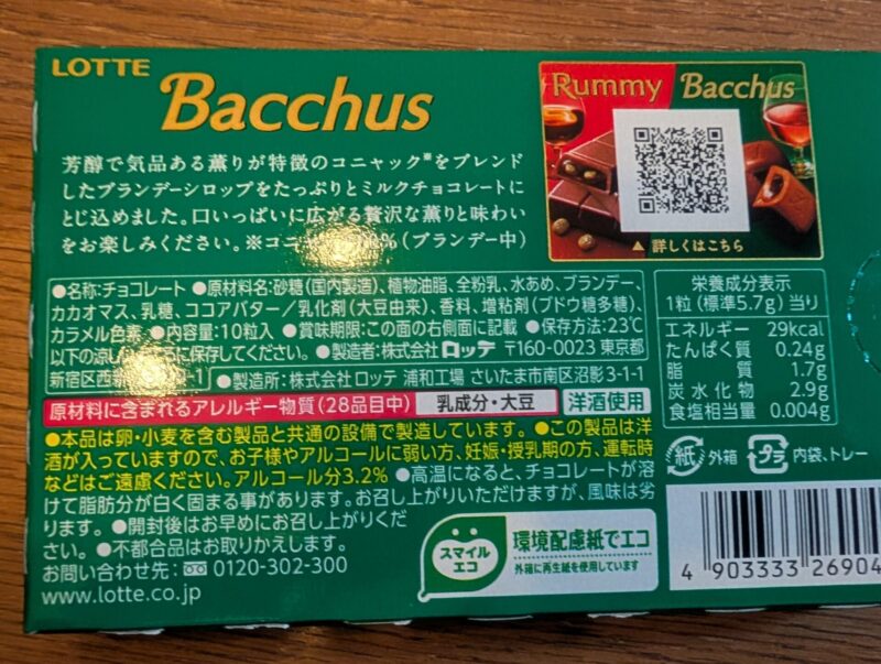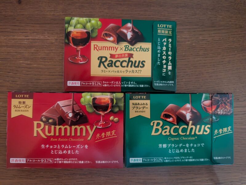 確かにラミーのチョコってちょっと甘すぎかなと思うことがあるから、バッカスのチョコに合わせるとそんなにしつこくなく、スルッと食べやすい気がする。ラミーは一本が少し大きいから、食べきることを考えるとちょっと意気込みが必要だし。