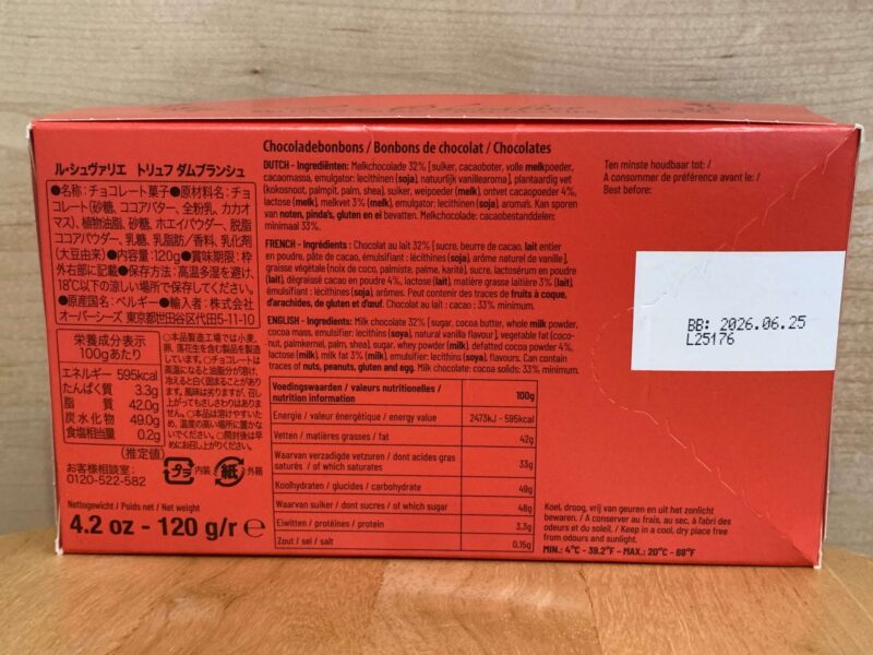 こちらが、カルディで個数制限のあったチョコレート「ル・シュヴァリエ トリュフ ダムブランシュ」です。
