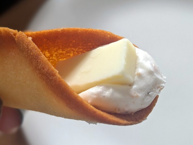まず、サクッとしたラングドシャをかじるとゴーダチーズの風味とふわふわクリーム。