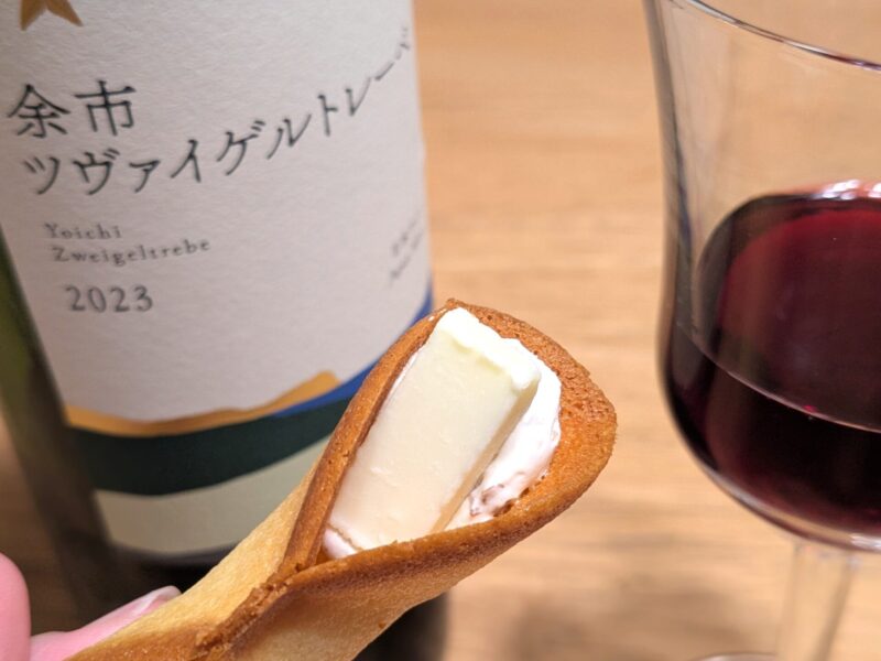 えー?この強力なチーズの風味はどこから?と食べながら気づいたのはラングドシャにゴーダチーズが練り込まれていたのでした。