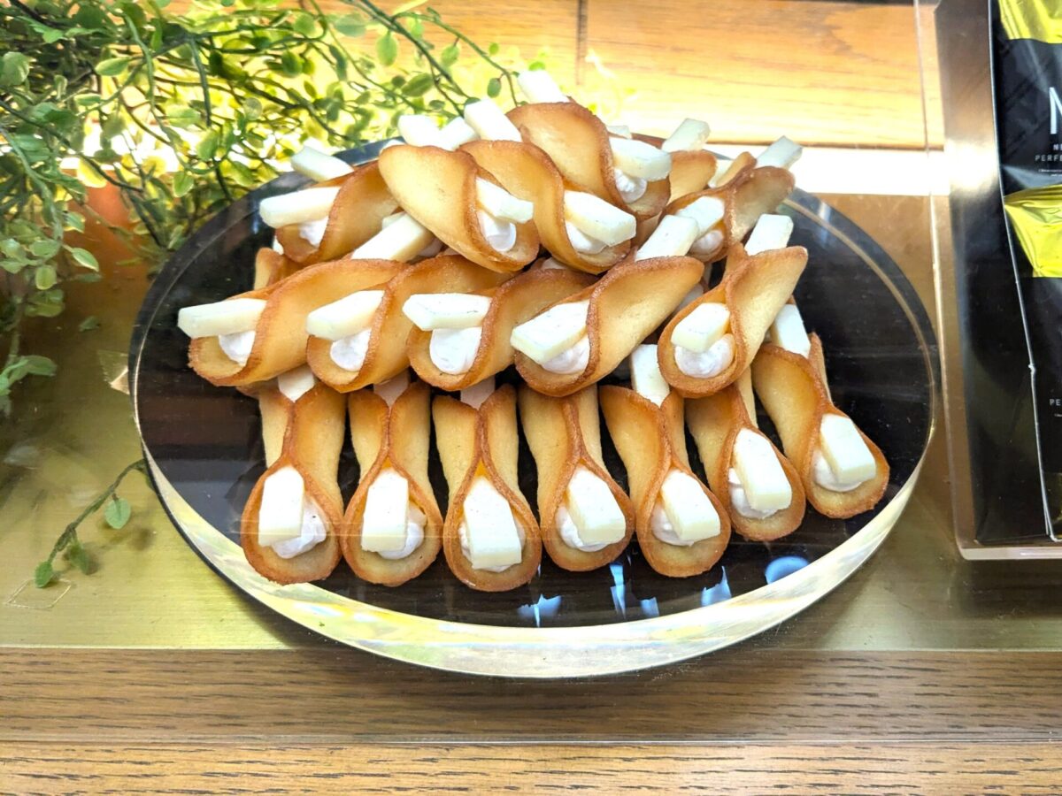 ホワイトチョコの甘みの奥に感じるクリームチーズ、ラングドシャから香る濃厚なゴーダチーズ、ふわふわクリームのナッツの香ばしさ。この三位一体のハーモニーが甘いのにしょっぱい、しょっぱいのに甘い。それでいて後味さっぱりの抜群のバランスを保っていて止まらなくなる美味しさでした。