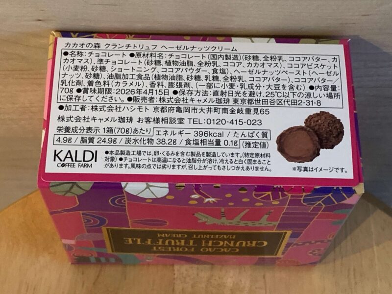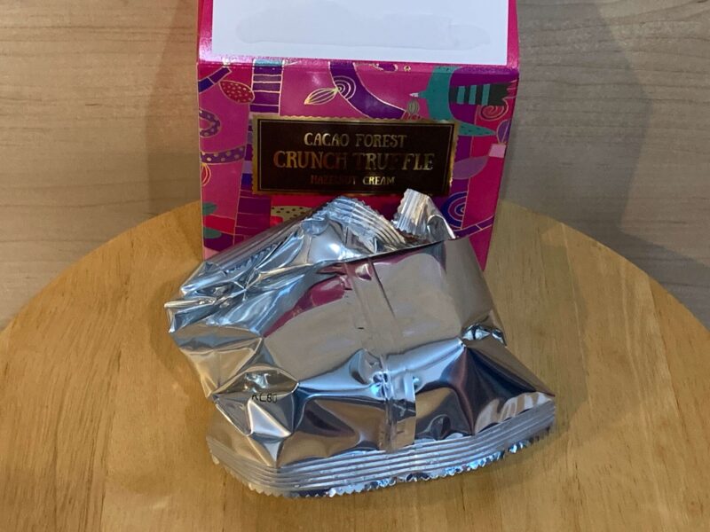 今回購入したチョコレートは、カルディの「カカオの森 クランチトリュフ ヘーゼルナッツクリーム」です。