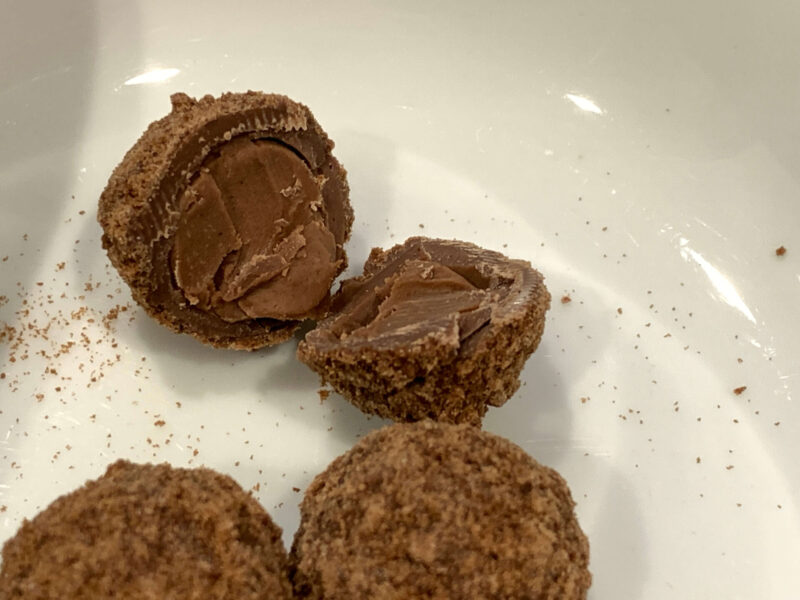 ヘーゼルナッツクリームの甘さを強く感じるのですが、まわりのココアパウダーの甘さが控えめになっているので、とてもいいバランスでした。
