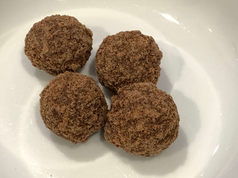 今回のクランチトリュフは、ココアクランチがまぶされたチョコレート。