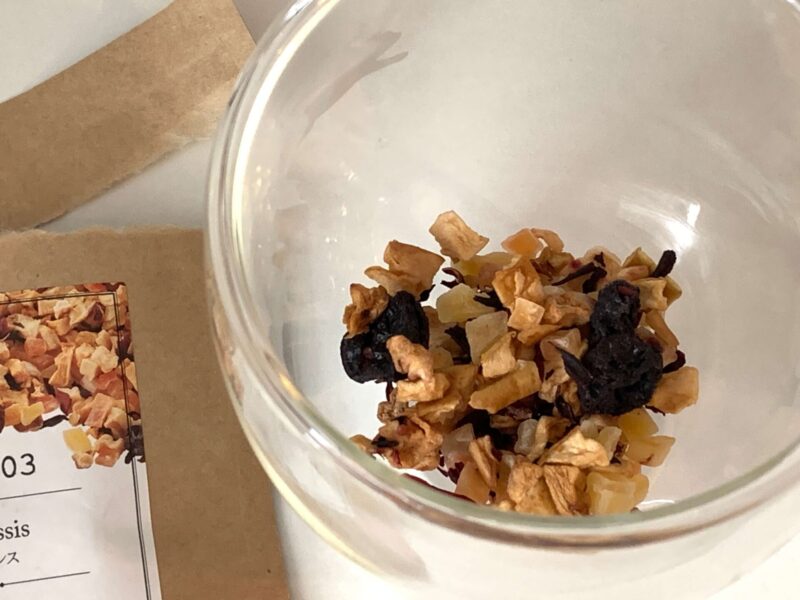 お茶ですが、包装の中にティーバッグが入っているわけではなく、ドライフルーツがそのまま入っていました。