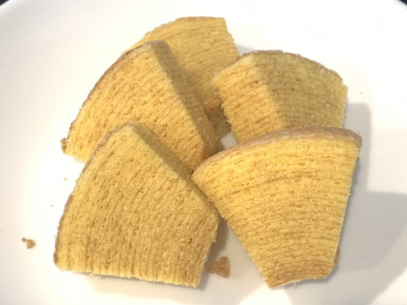 バウムクーヘンのサイズはまばらで、分厚くカットされたもの、薄くカットされたものなどばらばらでしたが、ちょこっと食べたいとき、たっぷり食べたいときなど、気分に合わせて選べる楽しさがあります。
