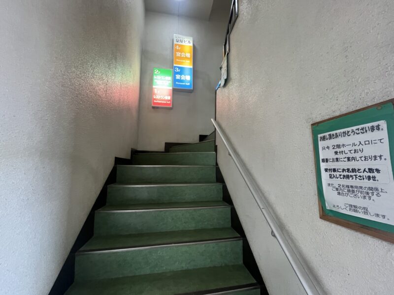 こちらの張り紙をたよりに2階へ。
