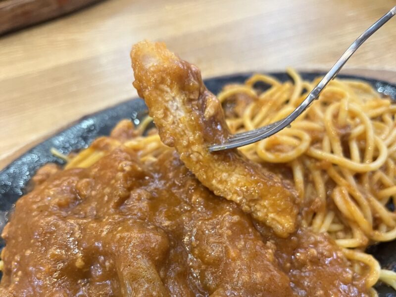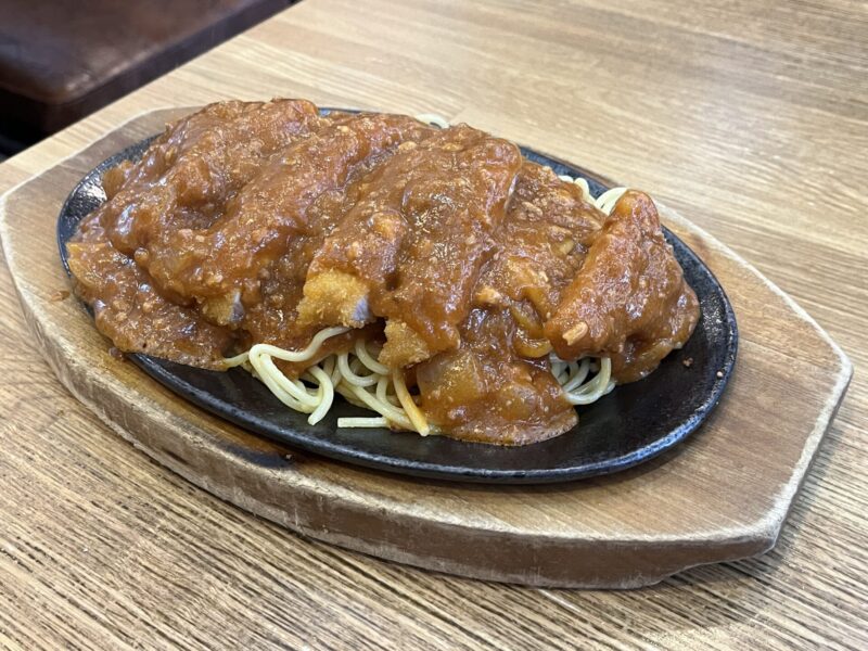 スパカツが湯気を立てながらじゅーじゅー音とともに登場。