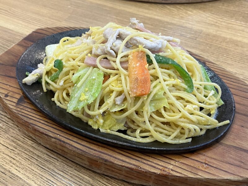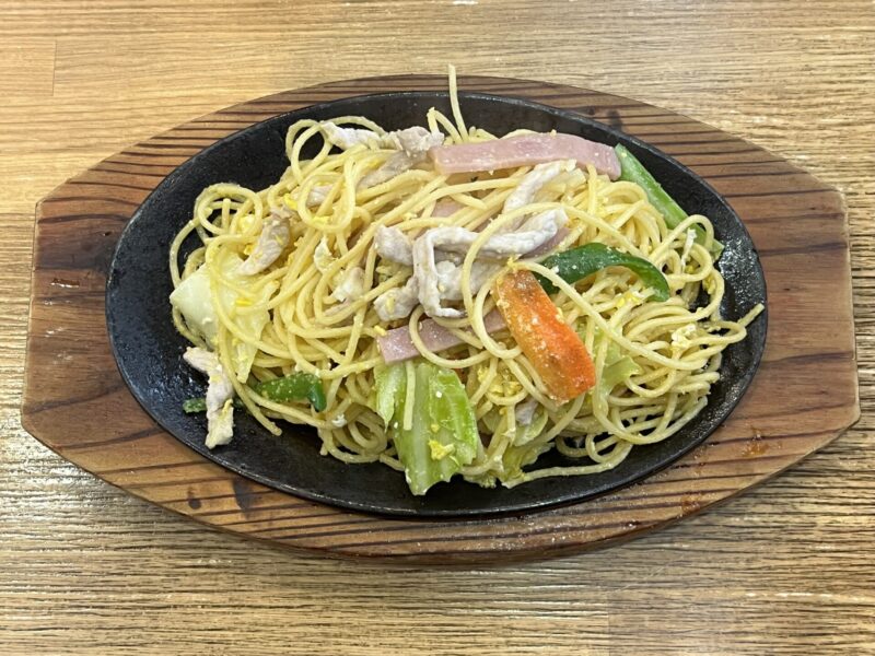鉄板に接したパスタはカリカリとしてパスタのおこげが楽しめます。