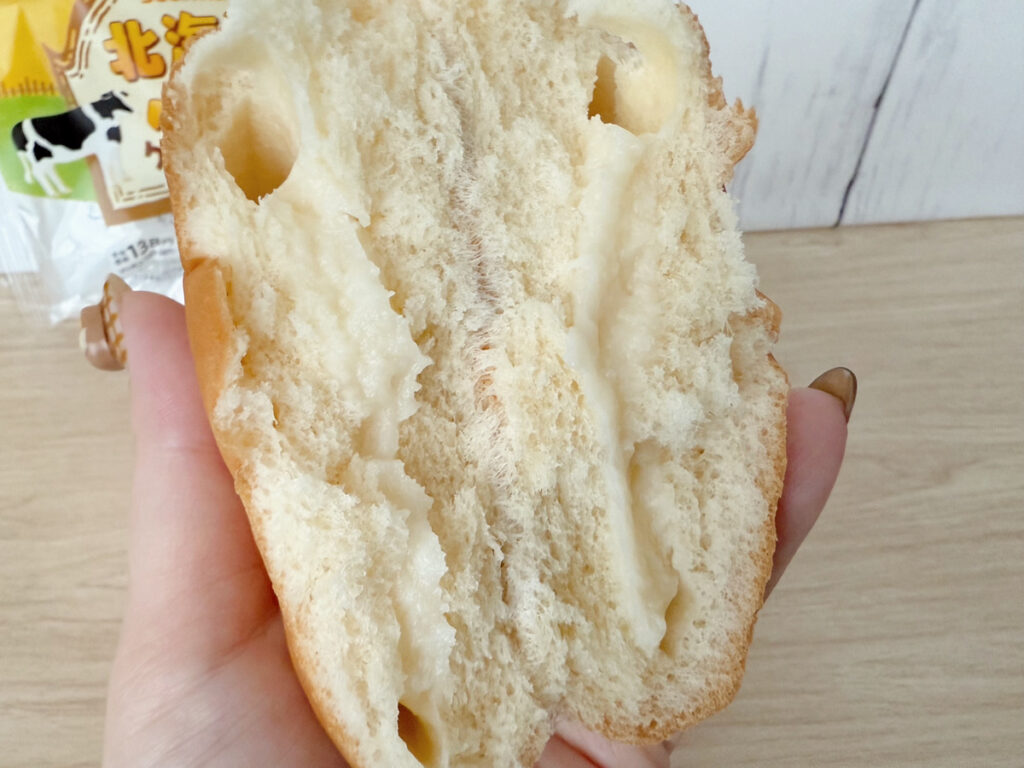 割ってみると、中には白いクリームがたっぷり詰まっています。これはめちゃくちゃ美味しそう…。