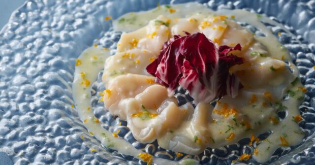 ラルドの薄いヴェールで覆って - 根室産花咲蟹と「石狩ひつじ牧場」石狩ブルーチーズを南瓜のニョッキと共に