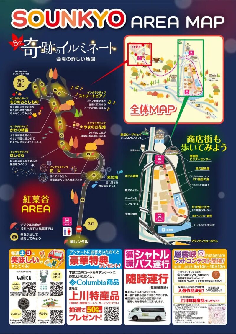 また、期間中はインスタグラムを使った「層雲峡フォトコンテスト2025」も開催。「#奇跡のイルミネート」をつけて投稿すると、アウトドアブランドColumbiaの商品や上川町の特産品が当たるチャンスがあります。