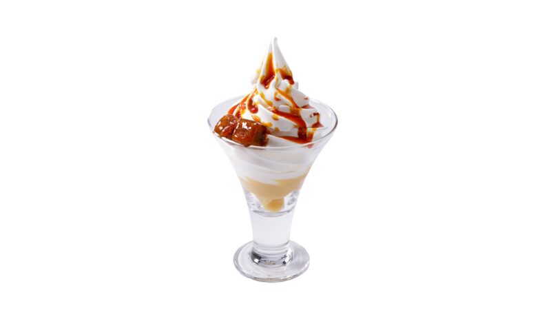 おいもサンデーは、北海道ソフトクリームに香ばしいカラメルを合わせ、トッピングの大学いもがアクセント。食後にも嬉しい小さめサイズで気軽に楽しめます。