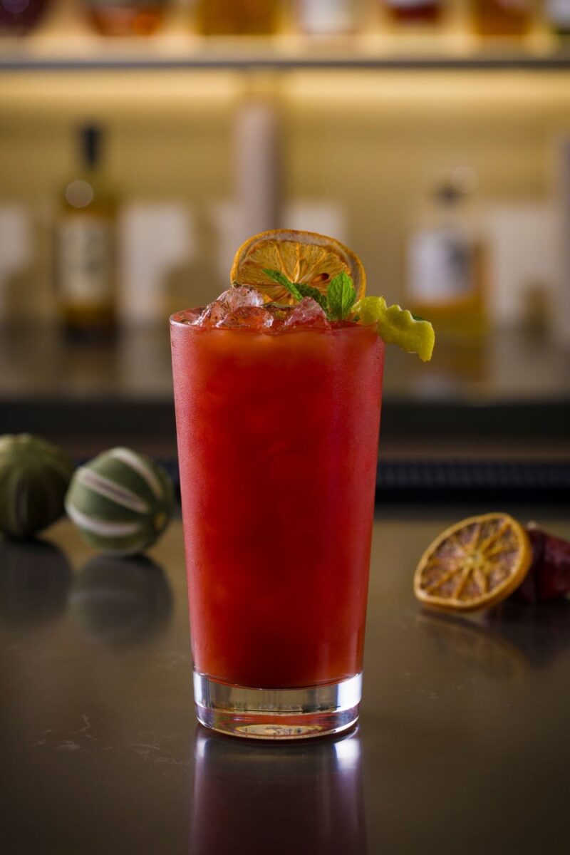 季節のパフェは、巨峰ジャムとブランマンジェ、道産えびすかぼちゃのクリームを重ねた三層仕立てに、“Kumachan”の魔女帽子とコウモリのチョコクッキー、秋果実をあしらったハロウィンらしい一品。ドリンクは、アプリコットブランデーの甘みとレモンの酸味にチョコシロップの蜘蛛の巣を描いた「Spider Web Apricot Sour」、ゴールデンアッサムとトマトジュースの紅茶仕立てノンアル「Bloody Golden Tea」など、カクテル・モクテルも楽しめます。